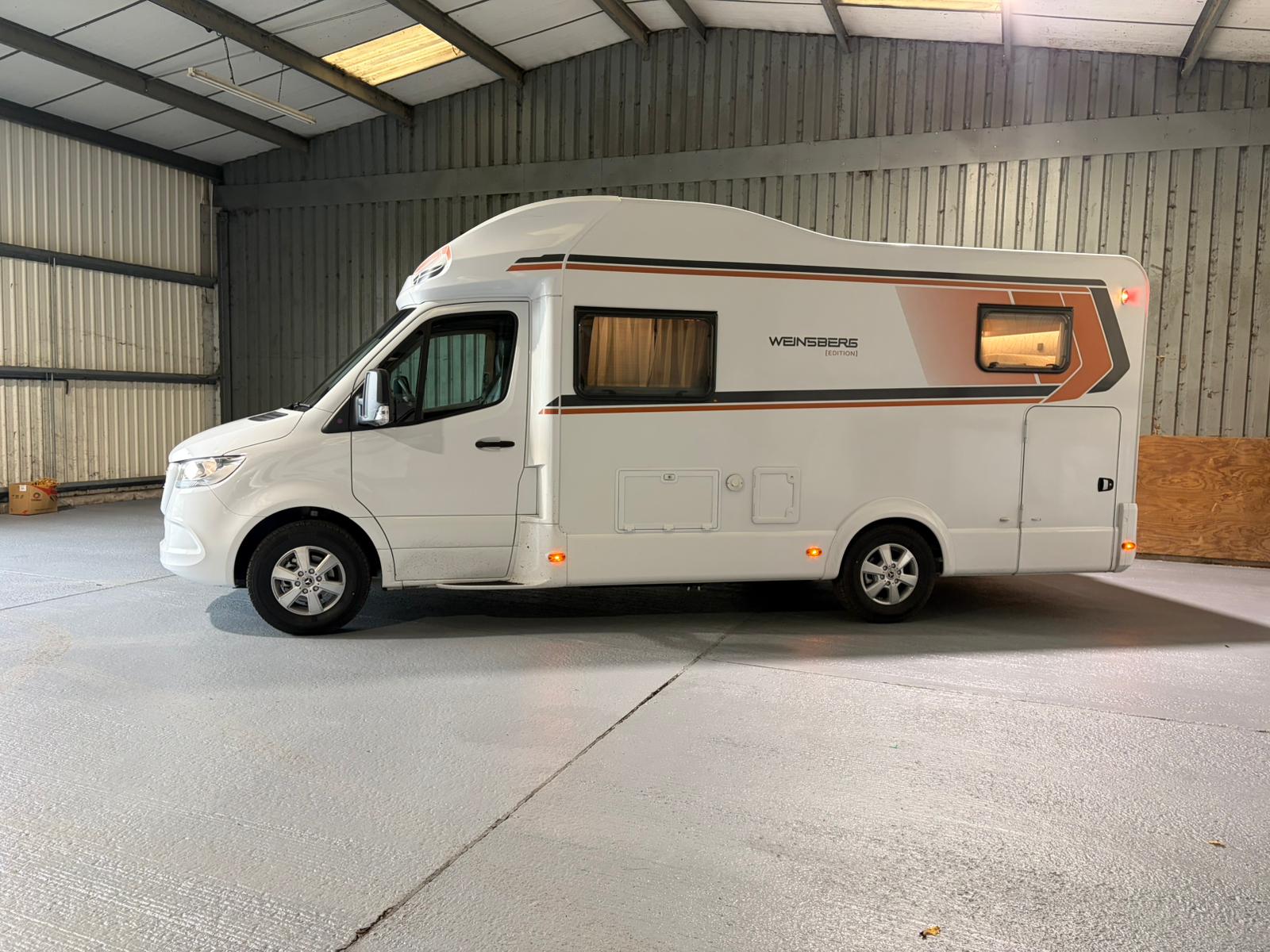 Meet Meg, our luxury Weinsberg CaraCompact Suite 640 MEG Edition. Built on a Mercedes chassis and measuring just under 7 metres, Meg combines sleek design with genuine comfort, making it the perfect choice for couples or families looking for a premium travel experience.